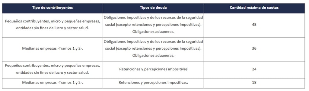 La Agencia de Recaudación y Control Aduanero (ARCA) pondrá a disposición planes de facilidades de pago de hasta 4 años para las micro, pequeñas o medianas empresas, entidades sin fines de lucro, contribuyentes del sector de salud y pequeños contribuyentes, para regularizar sus deudas tributarias.